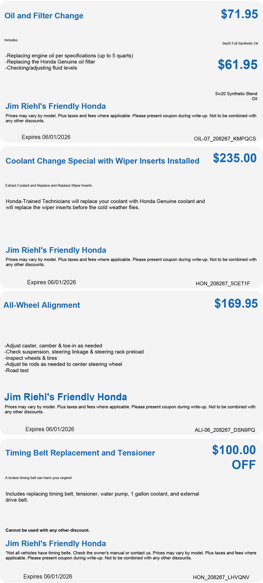Service Specials