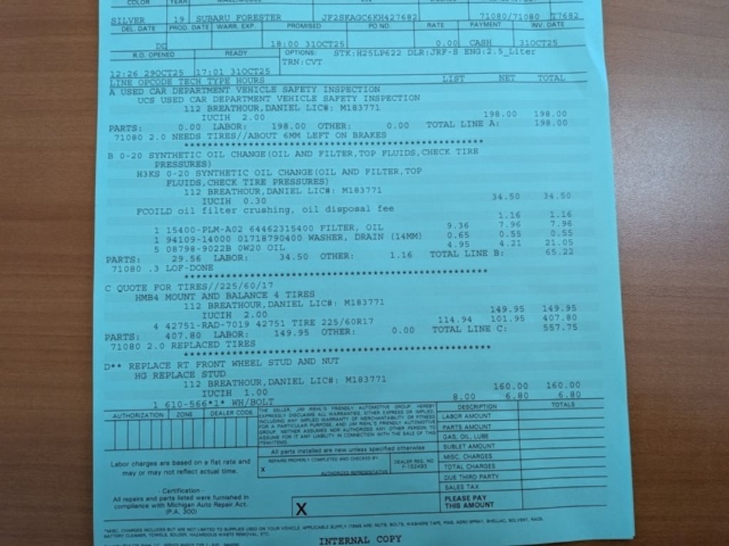- Front tires: 225/60HR17.0